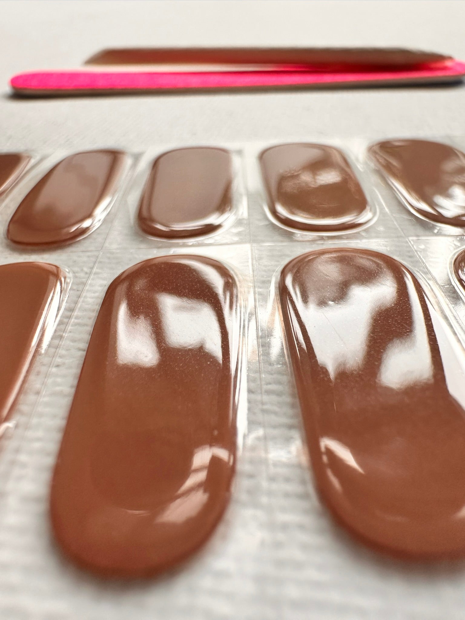 Introducing "Fudge" – your chic gel nail stickers combining subtle tones of pink and brown for a touch of elegance!